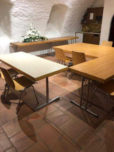 Parkplätze gegenüber bei der katholischen Kirche.